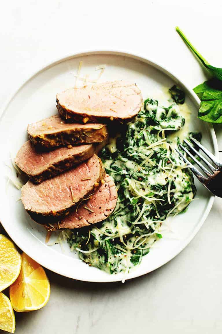 Garlic Rosemary Pork Loin with Creamed Spinach