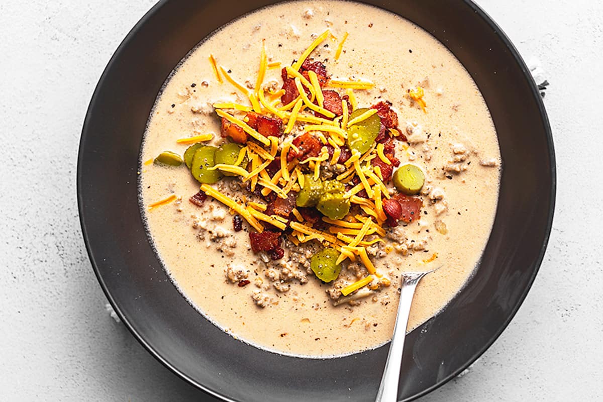 Stir in beef broth and cheddar cheese. Continue stirring until cheese is fully incorporated and soup is creamy. Taste for seasoning and add salt and pepper to taste.