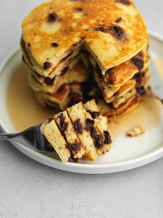 This super fluffy low carb pancake recipe is the perfect way to kick-start your day without all the sugar! Top with your favorite sugar free syrup and enjoy!