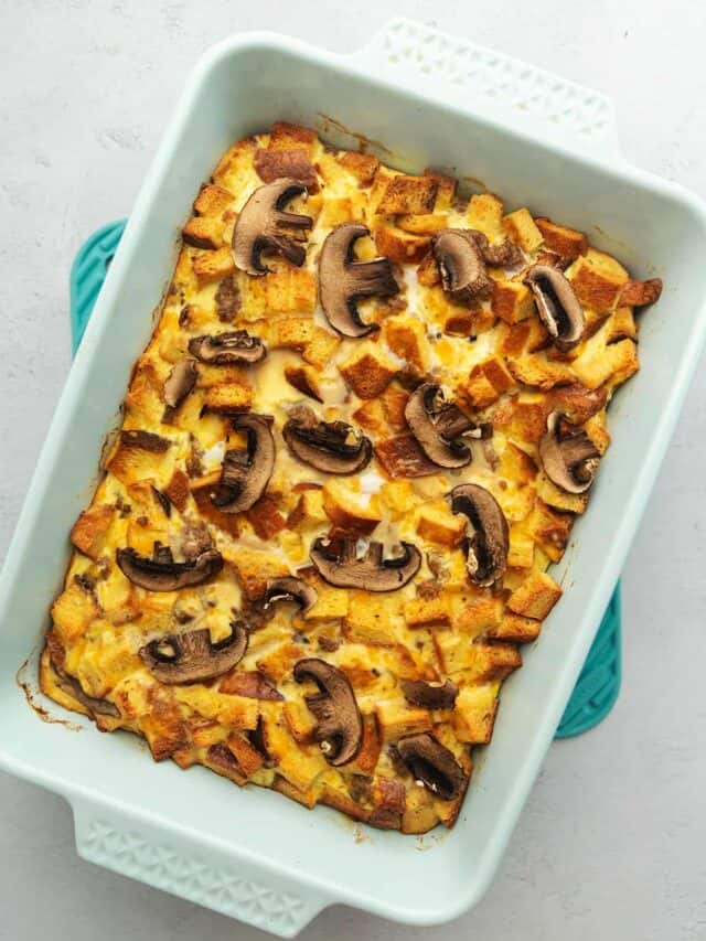 You don't have to rule out a breakfast strata on keto, just use keto friendly bread! Filled with sausage, cheese, and mushrooms...this keto breakfast strata will be your new favorite breakfast meal prep.