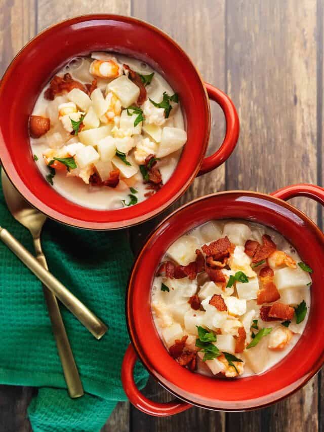 This hearty keto shrimp and bacon chowder is filled with turnips as the potatoes, bacon, tender shrimp and a whole lot of comfort! Rich with flavor but low on carbs! This comfort food is the perfect dinner idea on those chilly nights!