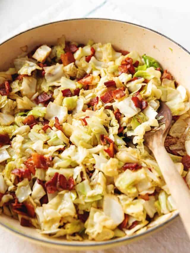 All you need is a skillet and a few simple ingredients to create this ultimate comfort dish! Super delicious crispy bacon paired with perfectly cooked cabbage all in the convenience of one skillet!